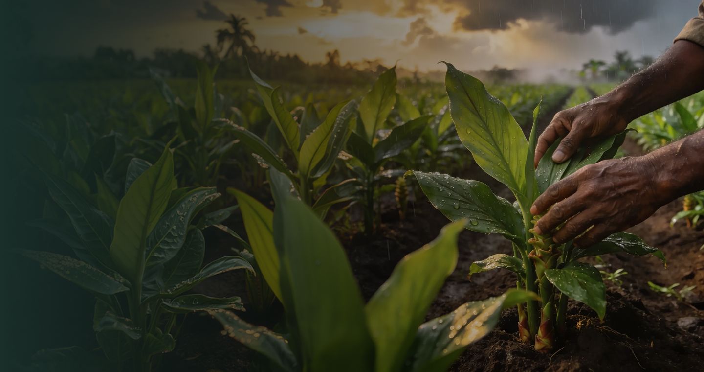 Our Selam turmeric grows in Wai’s nutrient-dense black soil, which retains moisture and drains well. This natural medium supplies essential minerals, supporting healthy root development without synthetic inputs.